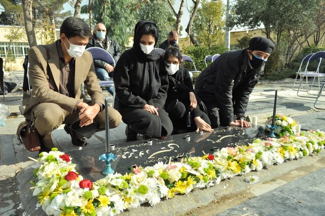بعد از این سخنان، سپهر پورحسینی نوه پروز پورحسینی بر سر مزار پدربزرگش قطعه موسیقی اجرا کرد.
